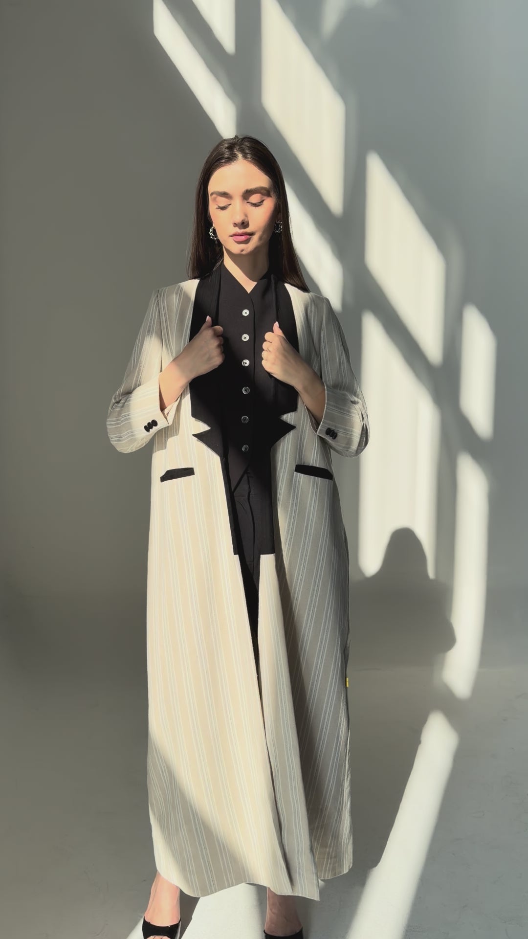 - Relaxed and effortless style with a lightweight striped finish, featuring a loose open-front fit and simple pocket details for everyday wear